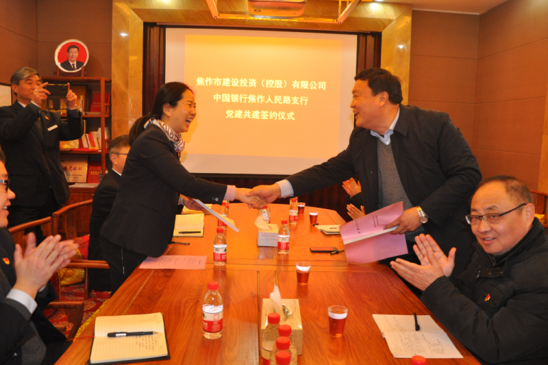 焦作市建設(shè)投資(控股)有限公司黨支部書記、董事長關(guān)玉紅,中國銀行焦作人民路支行黨支部書記、行長王曉燕就雙方黨支部情況作了相互介紹,表達(dá)了開展黨建共建的必要性,簽訂了黨建共建協(xié)議。
