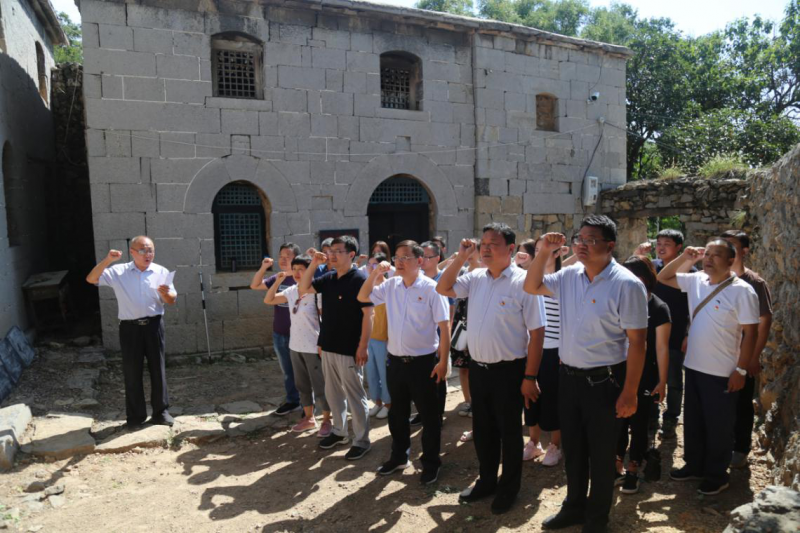 全體黨員在“焦作市委、市政府舊址”重溫入黨誓詞。