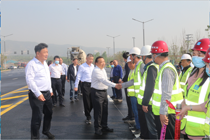 5月1日,中原路(解放路-焦輝路段)工程正式通車,進入試運行階段。集團公司黨委書記、董事長鄒仲春帶領集團全體班子成員慰問各施工、監(jiān)理等參建單位并乘車視察道路路況及兩側綠化效果。