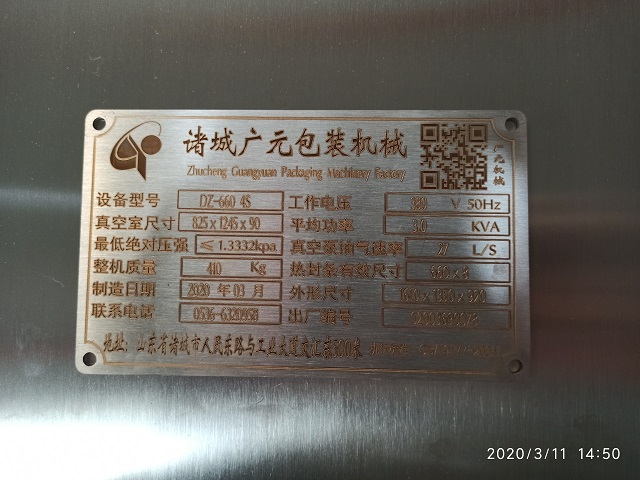 8.1每臺(tái)包裝機(jī)應(yīng)在明顯的部位固定銘牌,銘牌尺寸和技術(shù)要求按GB/T 13306的規(guī)定。銘牌上至少應(yīng)