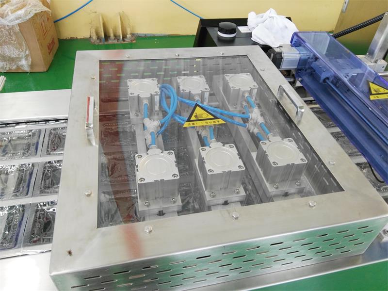 【7】成型、熱封:成型模及熱封模的升降結(jié)構(gòu),采用氣動(dòng)杠桿式獨(dú)立升降自鎖系統(tǒng)。